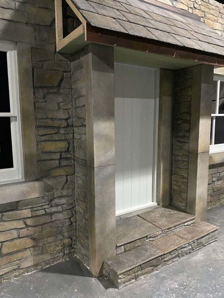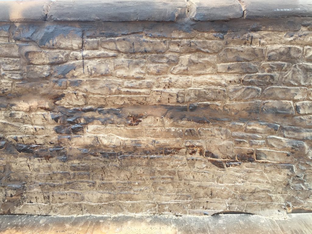 An average/typical stone size on this sheet (excluding mortar beds) is 300mm. long and 90mm high/deep.
